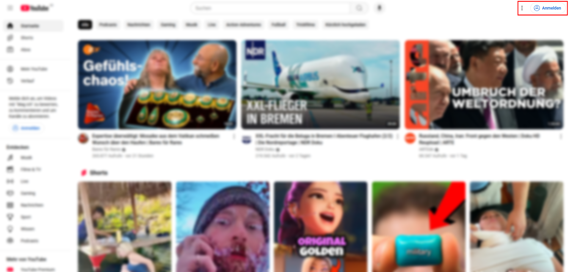 Klicken Sie oben rechts auf „Anmelden“. Bei mobilen Geräten klicken Sie unten rechts auf „Mein YouTube“.