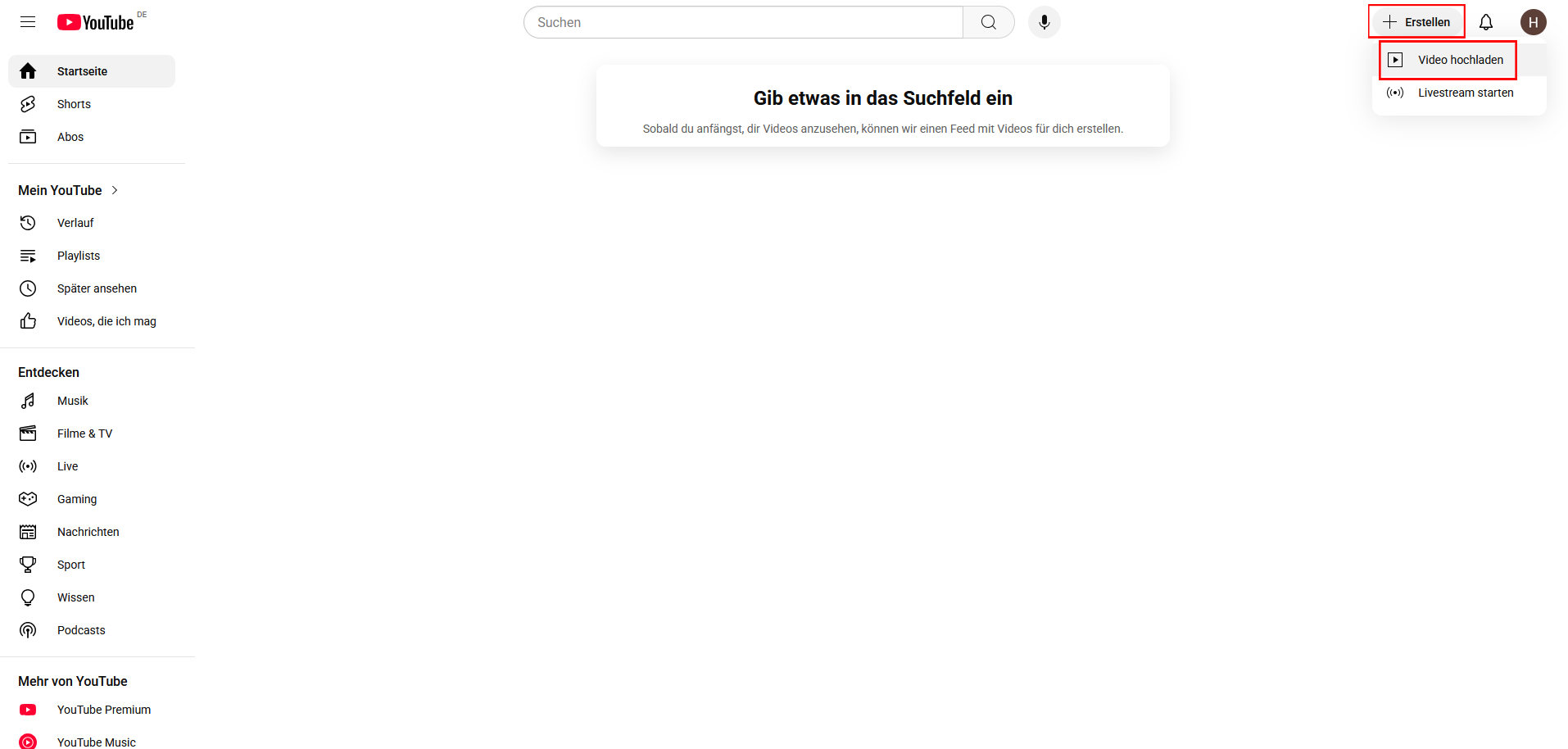 Gehen Sie auf die Webseite https://youtube.com.
